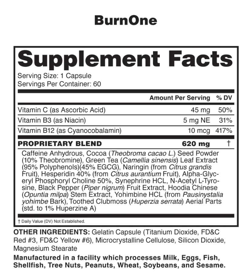 BurnOne is a thermogenic supplement that is formulated to promote weight management, increased energy, and focus.*